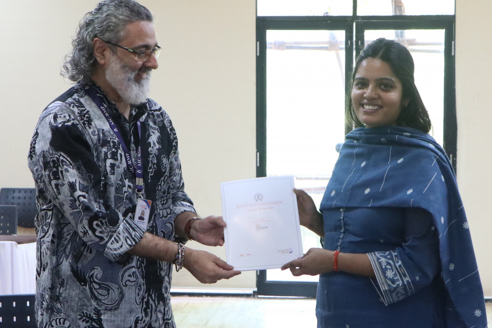 A course on 'Creative Entrepreneurship' was organized for the students of NMIMS School of Design Students. 23 students participated in this course. Uday Wankawala (CEO,AIC – RMP) was the Lead facilitator. Dr. Akash Ganju (Founder, Saathealth),Radha Iyer (Professor, K. J. Somaiya Institute of Management Studies & Research), Dr. Haseena Sayed (Assistant Professor & HOD at Jai Hind College), Dr. Kaustubh Dhargalkar (Founder, Potentials & Possibilities), Farzan Ghadially (Senator India, World Business Angels Investment Forum) , Chhaya Sehgal (Founder & CEO, The Winning Edge), V C Karthic (Investor & Founder of Buzzworks Business Services), Prof.Omkar (Founder, BHyve), Dr.Prasanth Nair (Co-Founder, Asynithis- Indus Partner), Bhushan Gajaria (Founder, Beehive Capital Advisors Ltd.) were the resource persons / facilitators for this interactive & unique course.
